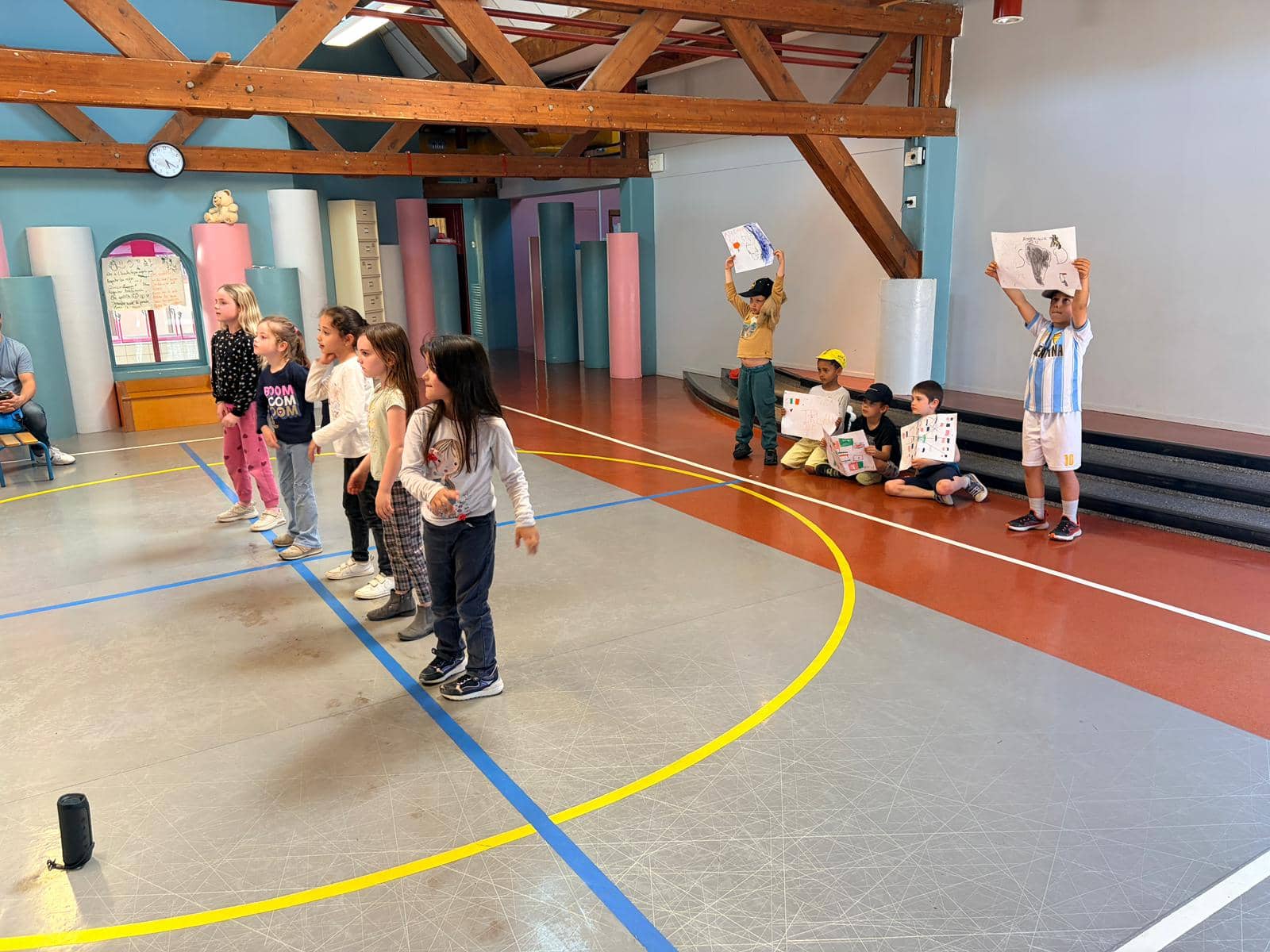 Cette énergie s’est prolongée jusque sur scène. Les 6/7 ans nous ont offert un voyage immobile grâce à leur spectacle de danses du monde, avant de surprendre tout le monde avec un morceau de rap plein d’audace.