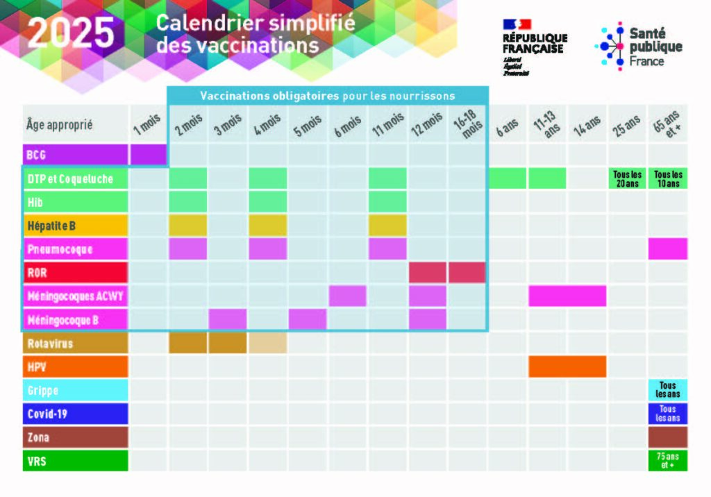 Le calendrier vaccinal et plus d’informations sur : https://vaccination-info-service.fr/vaccins